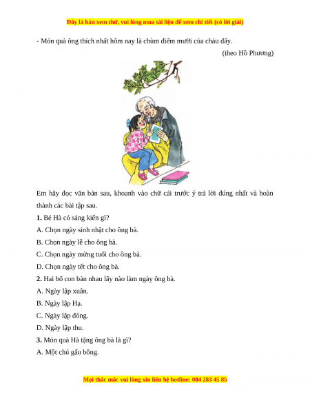 2. Hai bố con bàn nhau lấy nào làm ngày ông bà. A. Ngày lập xuân. B. Ngày lập Hạ. C. Ngày lập đông. D. Ngày lập thu.