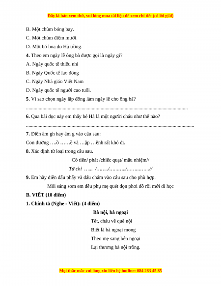 1. Chính tả (Nghe - Viết): (4 điểm) Bà nội, bà ngoại Tết, cháu về quê nội Biết là bà ngoại mong Theo mẹ sang bên ngoại