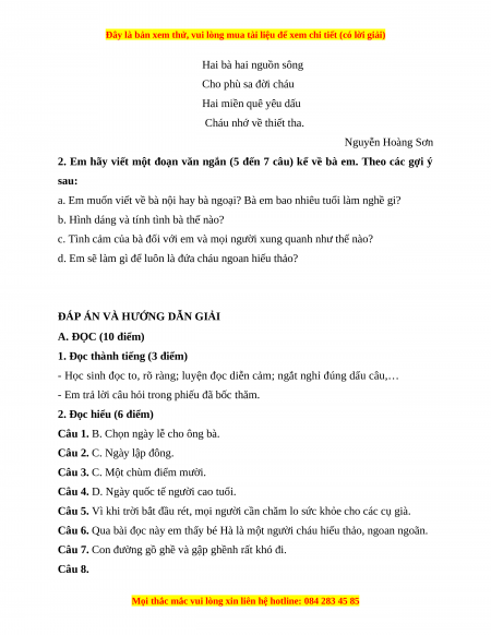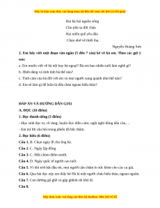 ĐÁP ÁN VÀ HƯỚNG DẪN GIẢI A. ĐỌC (10 điểm)