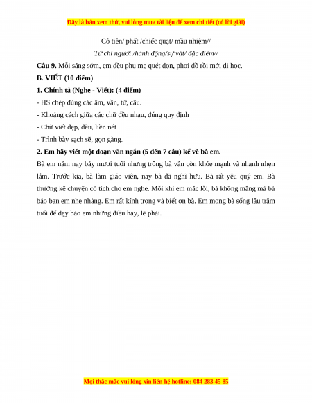 Mỗi sáng sơm em đều phụ mẹ quét dọn phơi đồ rồi mới đi học B. VIẾT (10 điểm)