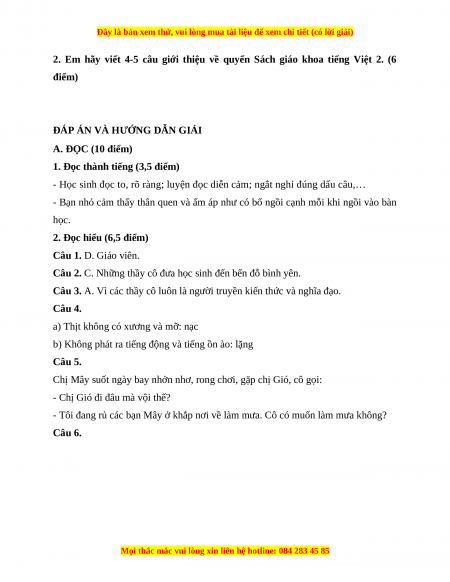 2. Em hãy viết 4-5 câu giới thiệu về quyển Sách giáo khoa tiếng Việt 2. (6 điểm)