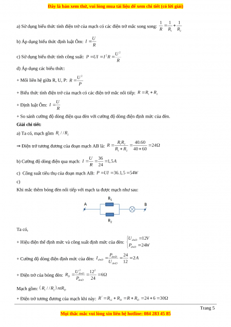 Câu 4 (TH): Công thức nào sau đây không áp dụng được cho đoạn mạch gồm hai điện trở mắc song song? A. B. C. D.