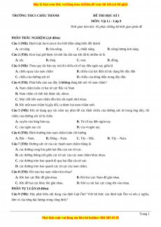 +Đề thi học kì 1 Vật lí năm 2023 trường THCS Ban Công - Tỉnh Thanh Hoá;