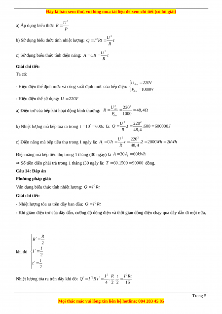 qua dây dẫn đi một nửa thì nhiệt lượng tỏa ra trên dây sẽ thay đổi như thế nào? Đáp án 1-C 2-B 3-D 4-C 5-C 6-A 7-A 8-C 9- 10- LỜI GIẢI CHI TIẾT