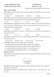 Đề thi học kì 1 Vật lí 9 năm 2023 trường THCS Quang Trung - Phòng GD_ĐT Kiến Xương - Thái Bình