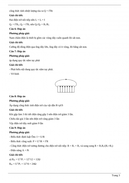 - Công thức điện trở tương đương cho điện trở nối tiếp: R = R1 + R2 và song song R = R1R2/(R1+R2) - Điện năng A = Pt Giải chi tiết: