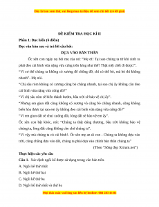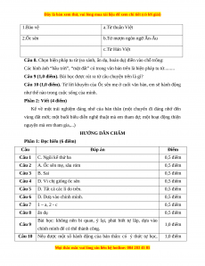 D. Tất cả các lí do trên. 0,5 điểm Câu 6 D. Dưạ vào chính mình. 0,5 điểm Câu 7 1 – a, 2 - c 0,5 điểm Câu 8 ẩn dụ 0,5 điểm