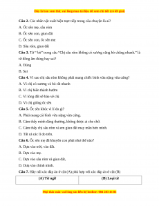 Câu 5 D. Tất cả các lí do trên. 0,5 điểm