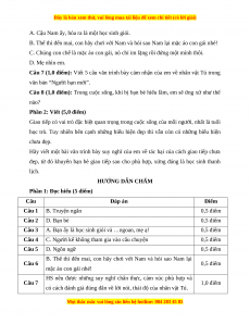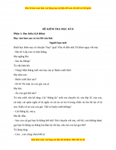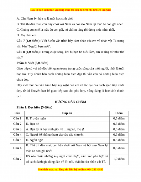 Phần 1: Đọc hiểu (5 điểm) Câu Đáp án Điểm Câu 1 B. Truyện ngắn 0,5 điểm Câu 2 D. Bạn bè 0,5 điểm Câu 3