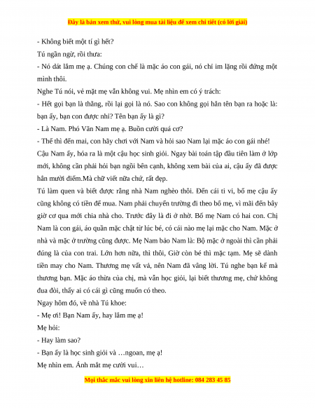 B. Thế thì đến mai, con hãy chơi với Nam và hỏi sao Nam lại Câu 6 0,5 điểm mặc áo con gái nhé!