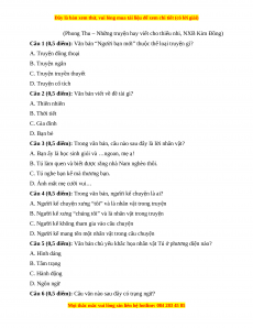 Câu 5 (0,5 điểm): Văn bản chủ yếu khắc họa nhân vật Tú ở phương diện nào? A. Hình dáng B. Tâm trạng C. Hành động D. Ngôn ngữ