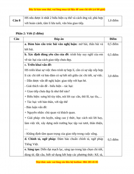 đẹp, từ đó khuyên bạn bè giao tiếp sao cho phù hợp, xứng đáng là học sinh thanh lịch. HƯỚNG DẪN CHẤM