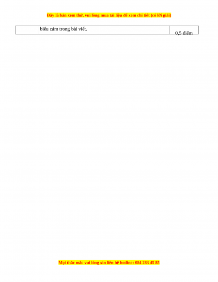 C. Người kể không tham gia vào câu chuyện 0,5 điểm Câu 5 D. Ngôn ngữ 0,5 điểm