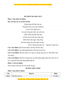 Câu 3 (2,0 điểm): Bài thơ miêu tả vẻ đẹp của dòng sông qua các thời điểm nào? Tác dụng?