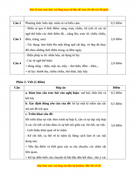 Câu 2 Phương thức biểu đạt: miêu tả và biểu cảm. 0,5 điểm