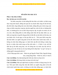 Câu 4 (2,0 điểm). Qua đoạn trích trên, tác giả muốn gửi gắm đến chúng ta những