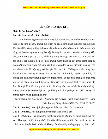Đây là bản xem thử, vui lòng mua tài liệu để xem chi tiết (có lời giải)