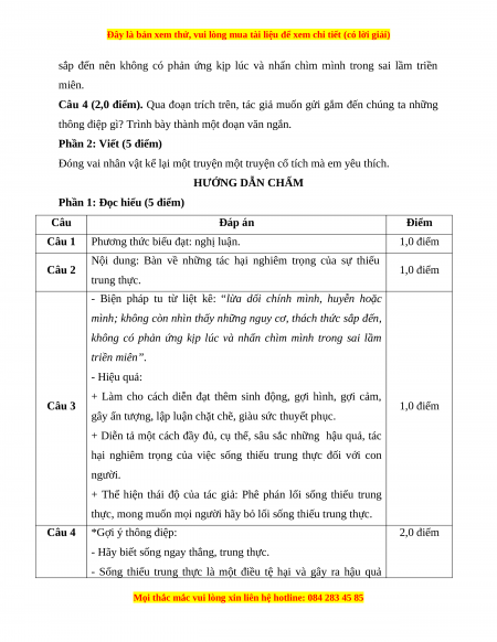 thực, mong muốn mọi người hãy bỏ lối sống thiếu trung thực. Câu 4 *Gợi ý thông điệp: 2,0 điểm