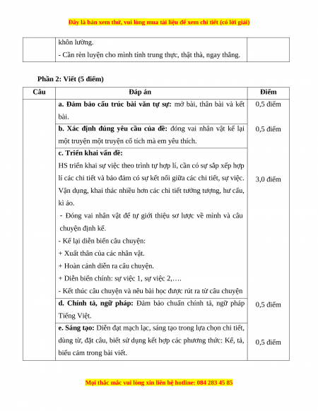 Phần 2: Viết (5 điểm) Câu Đáp án Điểm