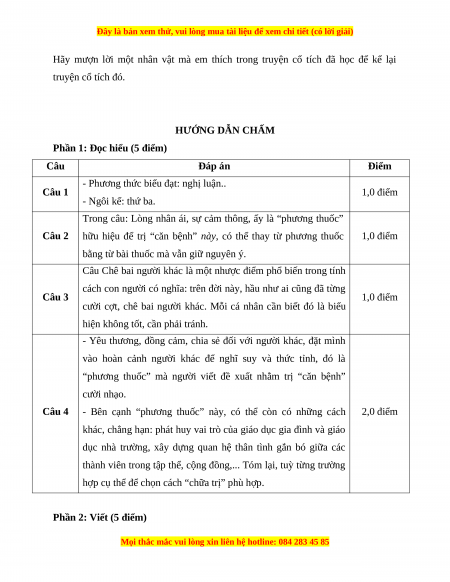 Câu 4 (2,0 điểm): Theo tác giả, “phương thuốc” hữu hiệu để trị “căn bệnh” cười