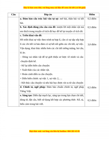 d. Chính tả, ngữ pháp: Đảm bảo chuẩn chính tả, ngữ pháp 0,5 điểm Tiếng Việt.