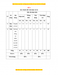 MA TRẬN ĐỀ THI HỌC KÌ II