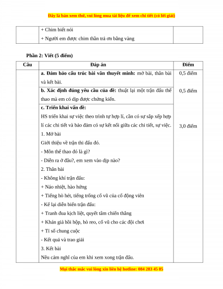 Phần 2: Viết (5 điểm) Câu Đáp án Điểm