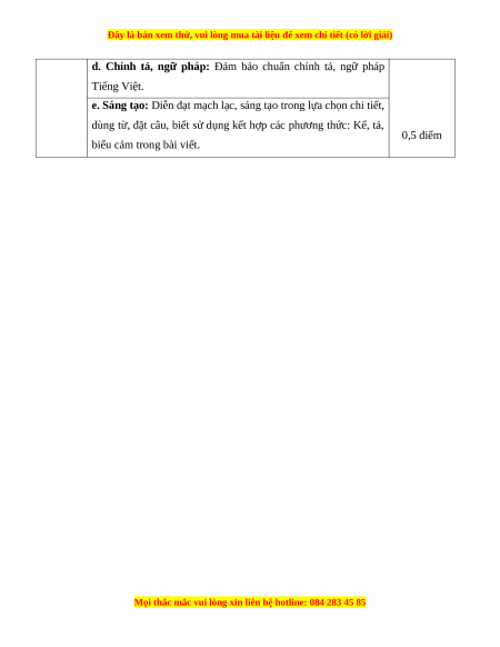 e. Sáng tạo: Diễn đạt mạch lạc, sáng tạo trong lựa chọn chi tiết,