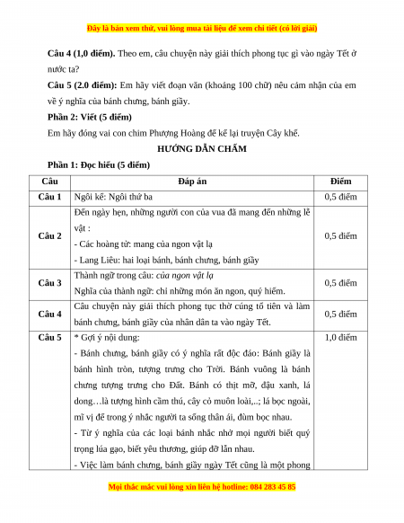 bánh chưng, bánh giầy của nhân dân ta vào ngày Tết. Câu 5 * Gợi ý nội dung: 1,0 điểm