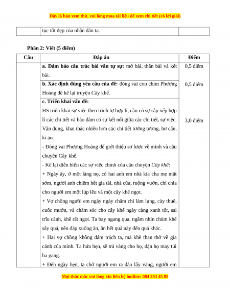 Phần 2: Viết (5 điểm) Câu Đáp án Điểm