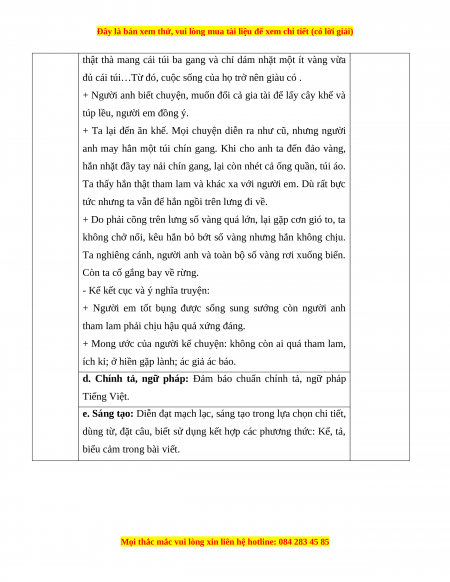 e. Sáng tạo: Diễn đạt mạch lạc, sáng tạo trong lựa chọn chi tiết,