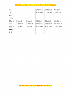 Tổng số Tỉ lệ: 10% Tỉ lệ: 20% Tỉ lệ: 20% Tỉ lệ: 50% Tỉ lệ: 100% điểm: Tỉ lệ: