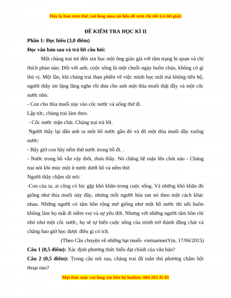 Câu 3 (1,0 điểm): Em hiểu gì về các chi tiết, hình ảnh “thìa muối”, “ hòa tan” trong văn bản?