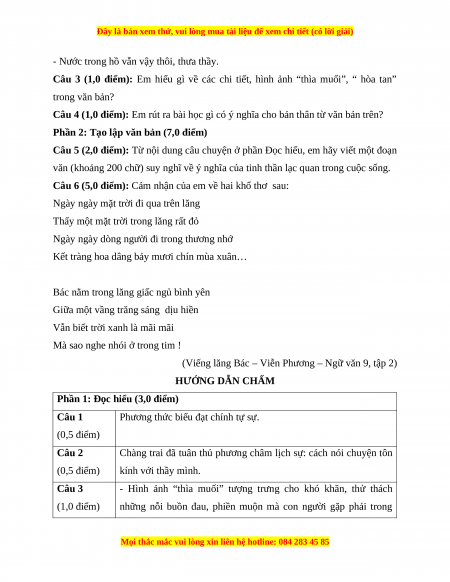 (Viếng lăng Bác – Viễn Phương – Ngữ văn 9, tập 2) HƯỚNG DẪN CHẤM