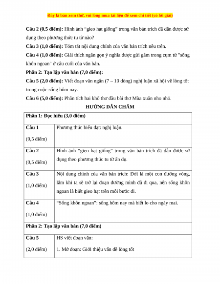 Đây là bản xem thử, vui lòng mua tài liệu để xem chi tiết (có lời giải)