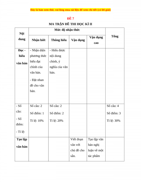 Đây là bản xem thử, vui lòng mua tài liệu để xem chi tiết (có lời giải)