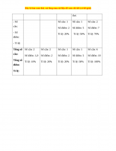 Tổng số Tỉ lệ: 10% Tỉ lệ: 20% Tỉ lệ: 20% Tỉ lệ: 50% Tỉ lệ: 100% điểm: Tỉ lệ: