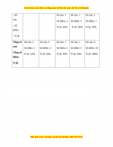 Tổng số Tỉ lệ: 10% Tỉ lệ: 20% Tỉ lệ: 20% Tỉ lệ: 50% Tỉ lệ: 100% điểm: Tỉ lệ: