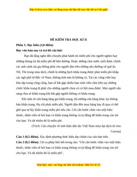 Đây là bản xem thử, vui lòng mua tài liệu để xem chi tiết (có lời giải)