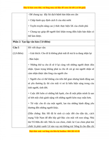 Câu 5 (2,0 điểm). Từ nội dung của phần đọc hiểu, em hãy viết đoạn văn (khoảng