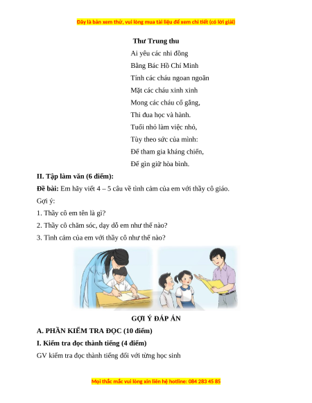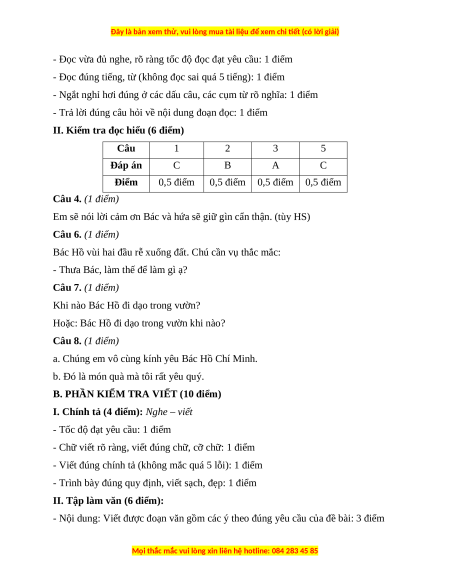 A. PHẦN KIỂM TRA ĐỌC (10 điểm)