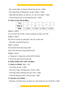 Câu 5: Từ ngữ nào chỉ đặc điểm của Bác Hồ? (0,5 điểm) A. Đất nước B. Non sông C. Giản dị