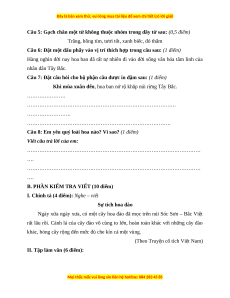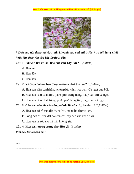 Câu 1: Bài văn nói về loài hoa nào của Tây Bắc? (0,5 điểm) A. Hoa lan B. Hoa đào C. Hoa ban