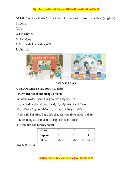 A. PHẦN KIỂM TRA ĐỌC (10 điểm)