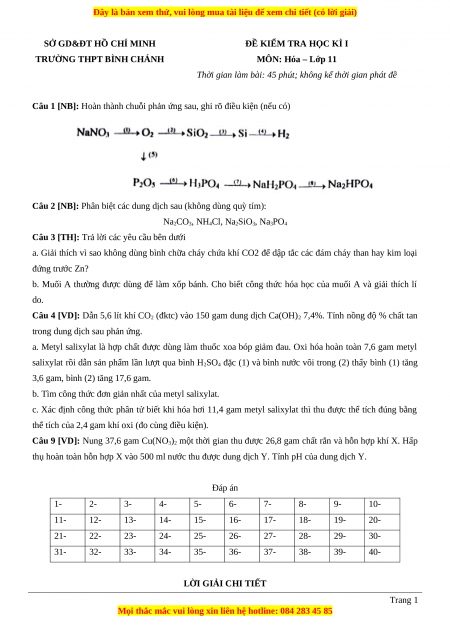 Đề thi học kì I Hóa lớp 11 trường THPT Bình Chánh - TP. Hồ Chí Minh