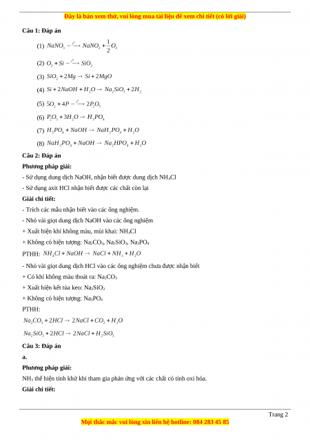 Câu 2: Đáp án Phương pháp giải: