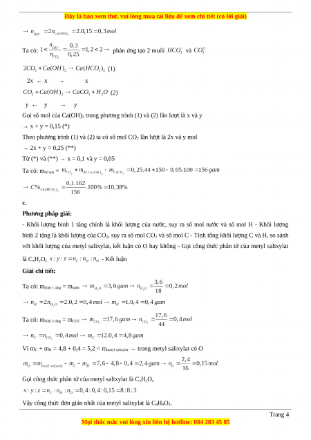 với khối lượng của metyl salixylat, kết luận có O hay không - Gọi công thức phân tử của metyl salixylat là CxHyOz - Kết luận Giải chi tiết: