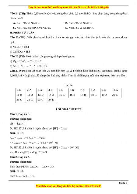 D. NaH2PO4 và Na2HPO4. II. PHẦN TỰ LUẬN