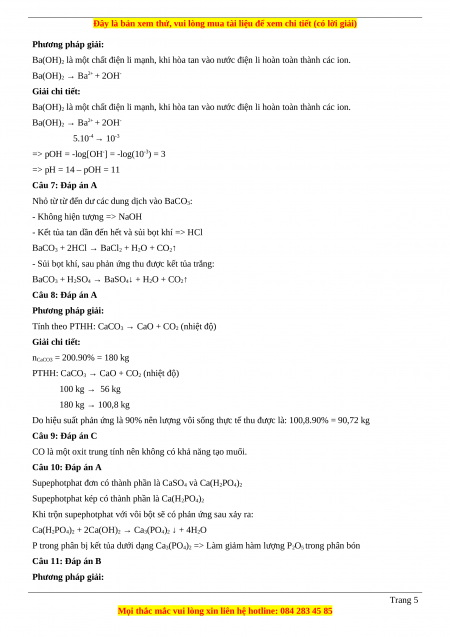 Câu 6 (VD): Dung dịch bazo mạnh Ba(OH)2 có [Ba2+] = 5.10-4. pH của dung dịch này là: A. 14,3. B. 11. C. 9,3. D. 8,7.