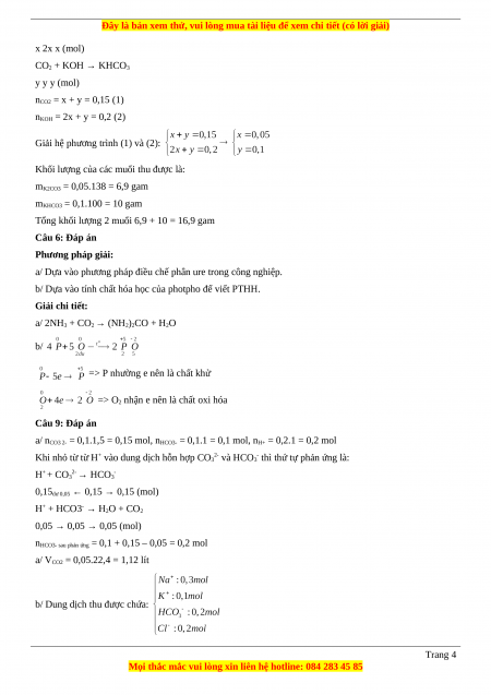 Đặt nK2CO3 = x mol; nKHCO3 = y mol CO2 + 2KOH → K2CO3 + H2O Trang 3